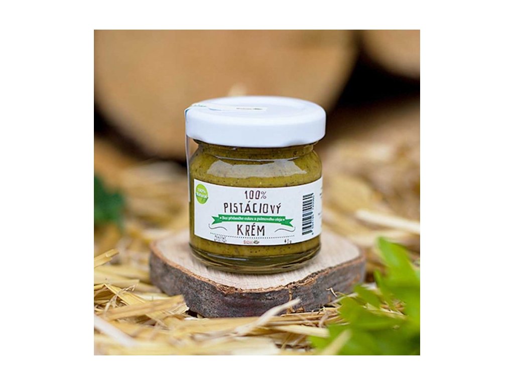 - Pistáciový krém zachovává vysoký obsah proteinů a výrazně hustou ořechovou chuť. Není třeba dodávat, že nepřidáváme žádné zbytečnosti jako jsou sůl, cukr nebo olej.