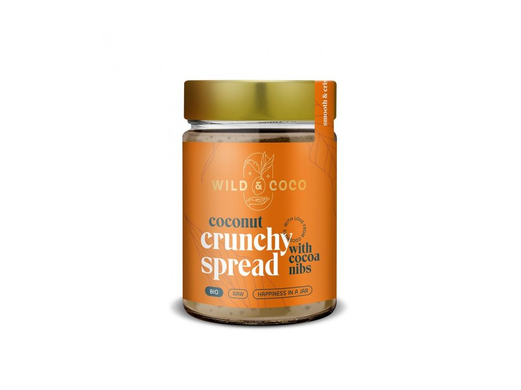 Jemná a lahodná kokosová pomazánka s křupavými kousky kakaových bobů. Už tak harmonickou kombinaci doplňuje vůně vanilky a pomeranče. Přezdívka pro tuto pomazánku je “štěstí ve skle” a i vy si ji zamilujete po prvním ochutnání. Potěší vaše chuťové pohárky a vaše tělo.