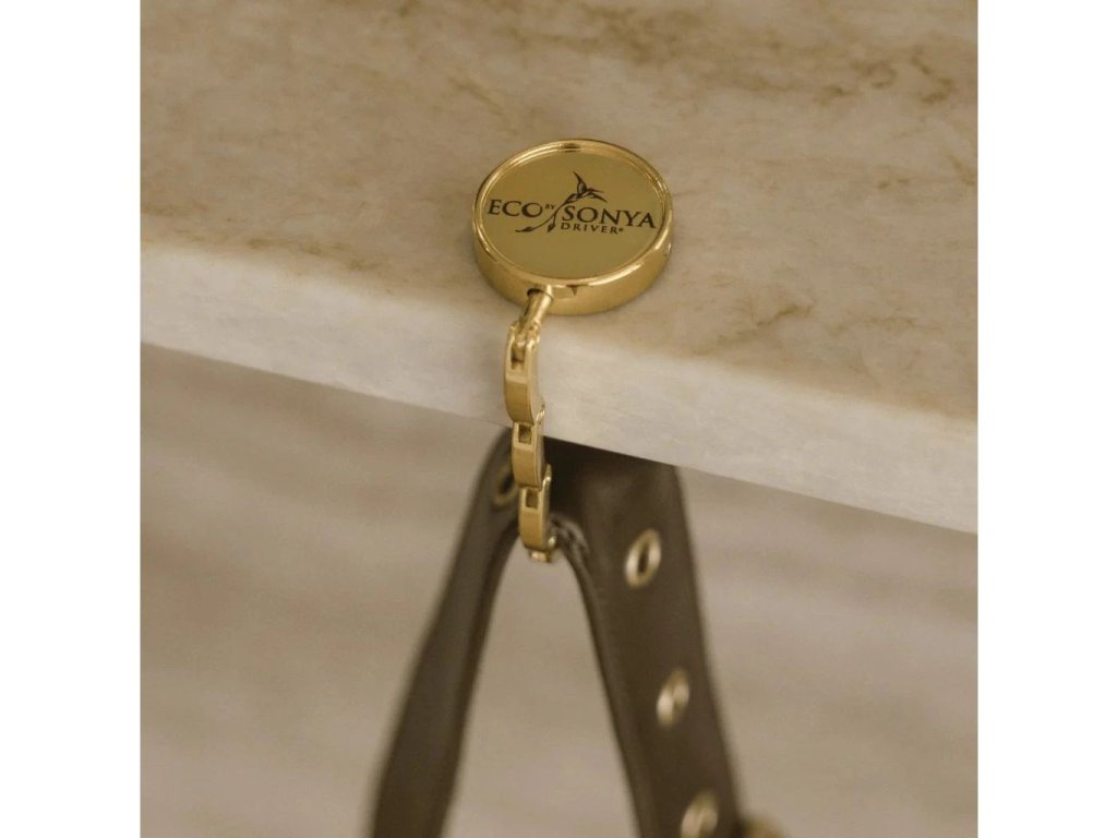 DÁREK NAVÍC – Elegantní zlatý háček na kabelku, díky kterému půjde vždy bezpečně zavěsit a udržet mimo dosah špinavé podlahy!