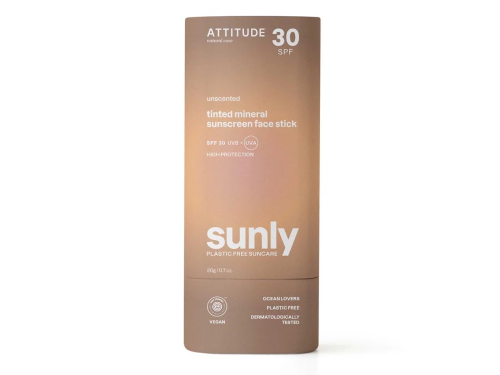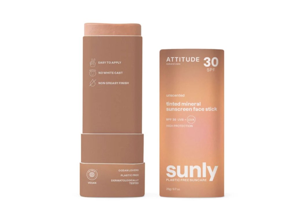 Představujeme novou řadu přírodních opalovacích tyčinek Sunly od ATTITUDE. Snadno se nanášejí a díky oválnému obalu perfektně padnou do ruky. Minerální opalovací krém v tyčince jemně tónuje a byl speciálně navržený pro citlivou pleť. Poskytuje spolehlivou ochranu před sluncem, aniž by zanechal mastné stopy či bílý film. Opalovací krém má SPF 30, který blokuje 97,4 % UVB paprsků.