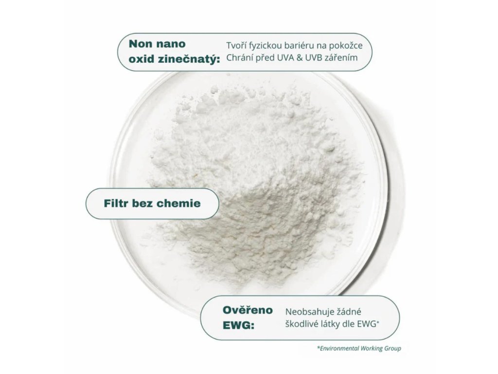 - Minerální filtr: oxid zinečnatý - bez nanočástic.