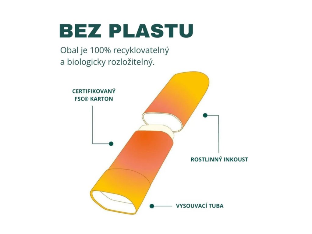 - V ekologickém balení: 100% odbouratelný obal: revoluční bezplastový obal vyrobený z biologicky odbouratelného kartonu s certifikací FSC ze zodpovědně obhospodařovaných lesů.